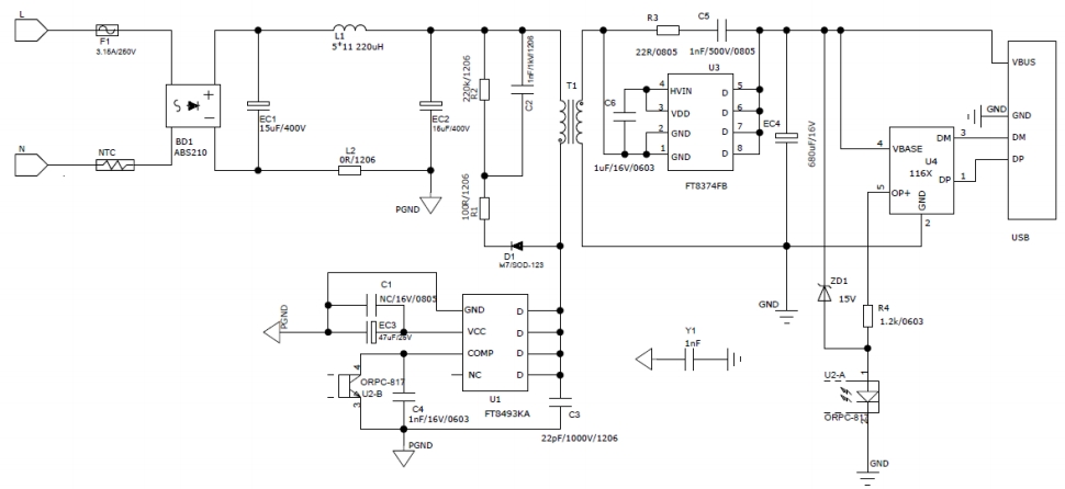 變壓器是充電器的核心部件之一。FT8493KA的變壓器采用EE1811磁芯,初級繞組電感量為1.30mH,漏感量為50uH。這種設(shè)計(jì)不僅提高了變壓器的效率,還降低了成本。變壓器的制作工藝要求嚴(yán)格,包括繞組的排列、絕緣處理以及最后的抽真空浸油和高溫烘干等步驟。這些工藝細(xì)節(jié)確保了變壓器的性能和可靠性。
