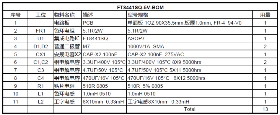 在現代電子設備中,小家電輔助電源的需求日益增長,對電源的性能要求也越來越高。FT8441SQ憑借其卓越的性能,成為設計高精度、高效率、低成本恒壓輸出開關電源的理想選擇。本文將深入解析基于FT8441SQ的5V250mA開關電源方案,涵蓋其設計特點、電源規格、電路原理圖、PCB布局以及物料清單(BOM)等關鍵內容。