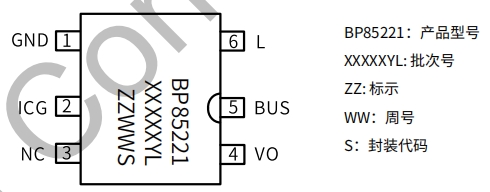 BP8522SL 的管腳封裝圖清晰地展示了其管腳布局和連接方式。芯片共有 6 個(gè)管腳,每個(gè)管腳都有明確的功能定義,確保了電路設(shè)計(jì)的簡潔性和可靠性。