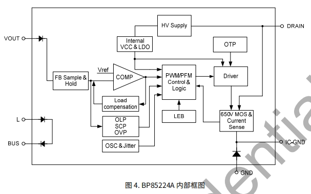 高壓MOSFET:內部集成650V高壓MOSFET,減少外部元件數(shù)量。