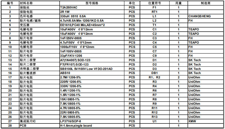 注:量大可換同步整流LP3588CSF,效率再提3%,成本加¥0.15。