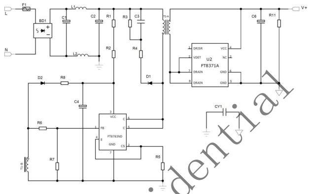在當(dāng)今競爭激烈的電源市場(chǎng)中,如何在保證性能的同時(shí)降低成本,是每個(gè)工程師都面臨的挑戰(zhàn)。傳統(tǒng)方案如LP3783A雖然可靠,但其復(fù)雜的外圍電路和高昂的物料成本,已難以滿足市場(chǎng)對(duì)低成本、高性能電源的需求。FT8783ND1憑借其創(chuàng)新的原邊反饋技術(shù)和集成的功率管,為5 V/2 A電源設(shè)計(jì)提供了一種全新的解決方案,不僅大幅簡化了電路設(shè)計(jì),降低了成本,還輕松滿足了六級(jí)能效要求,為工程師們帶來了新的選擇。