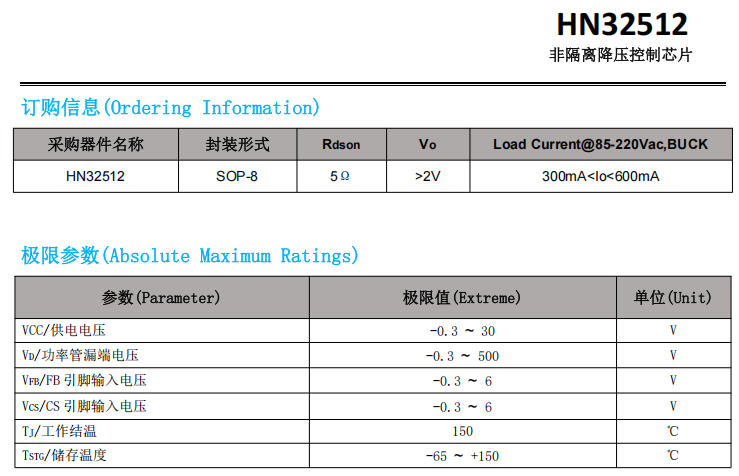HN32512直接替代KP15052SPA,KP15051SPA低成本非隔離降壓芯片方案